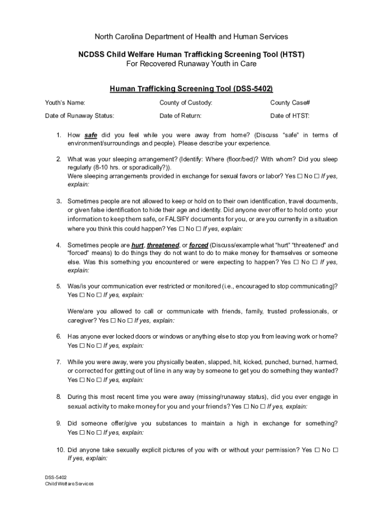 Get the free Ncdss Child Welfare Human Trafficking Screening Tool (htst)