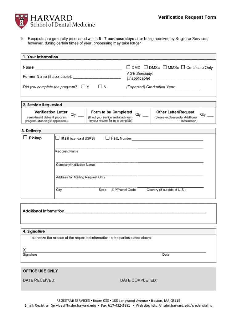 Get the free Verification Request Form