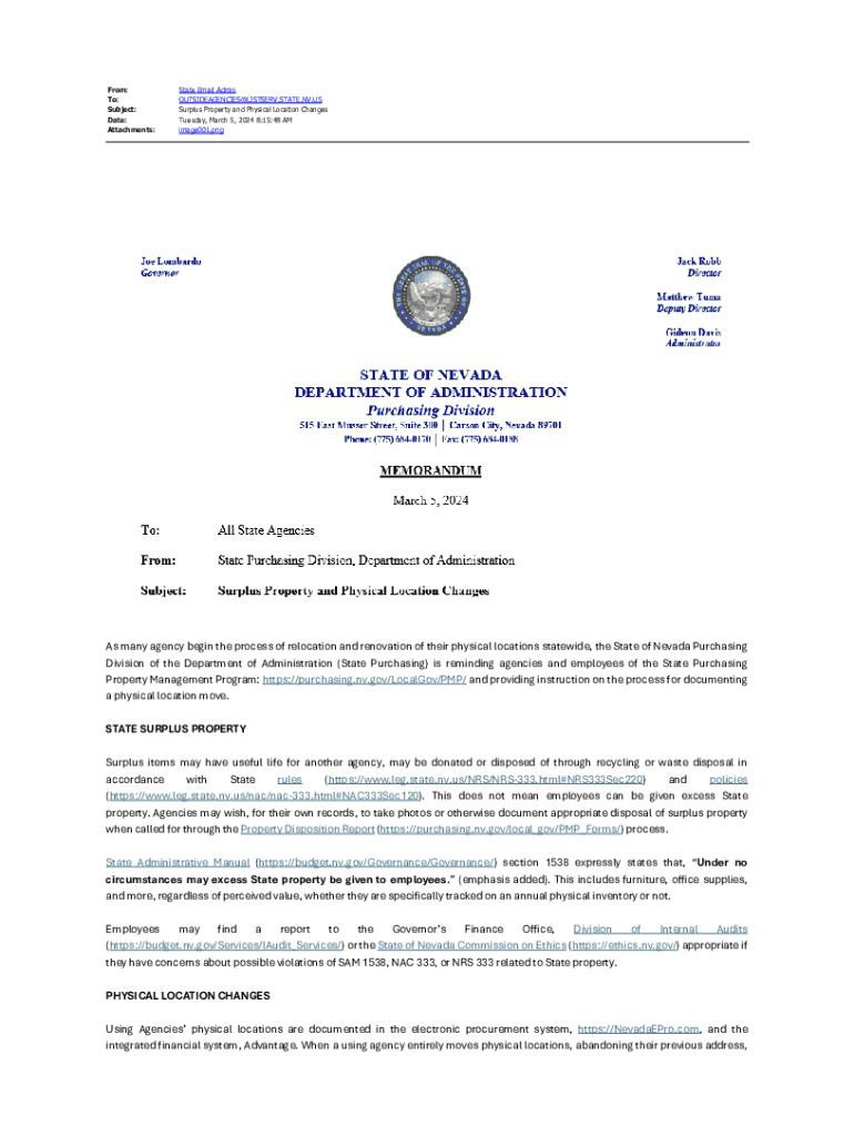 Get the free All Agency Memos - Purchasing Division - State of Nevada
