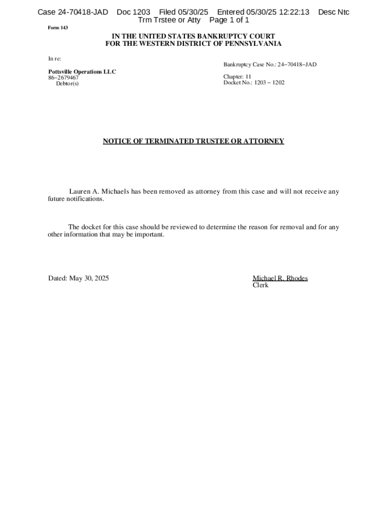 Get the free Notice of Terminated Trustee or Attorney