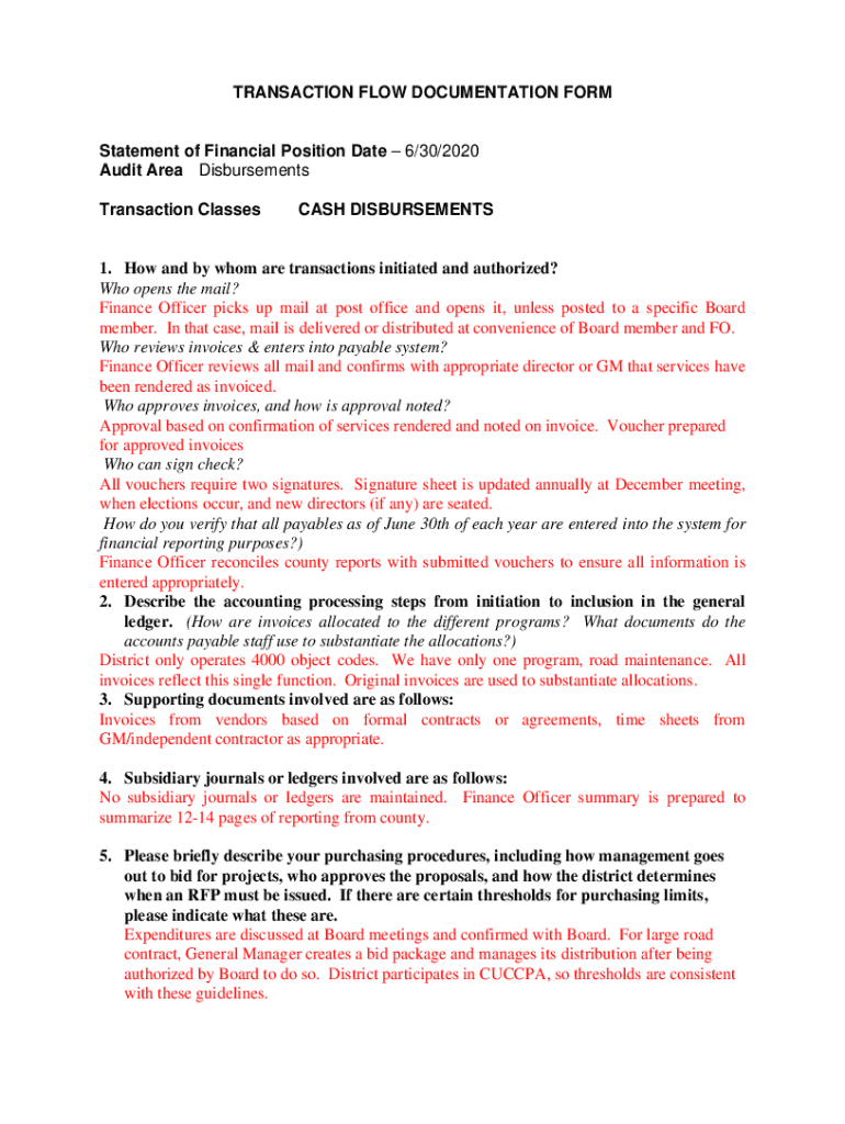 The transaction flow documentation form is a record that outlines the details of financial transactions within a business, detailing the sequence and flow of those transactions for auditing and regulatory purposes.