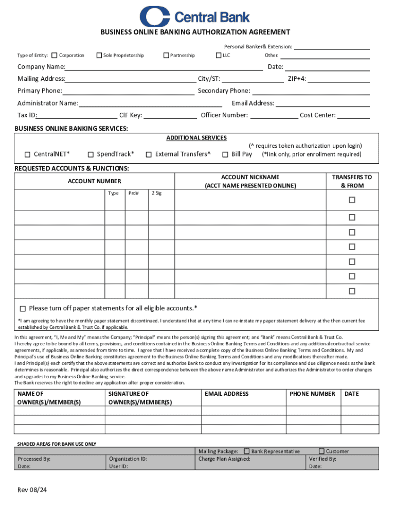 Comprehensive Guide to the Business Online Banking Authorization Form