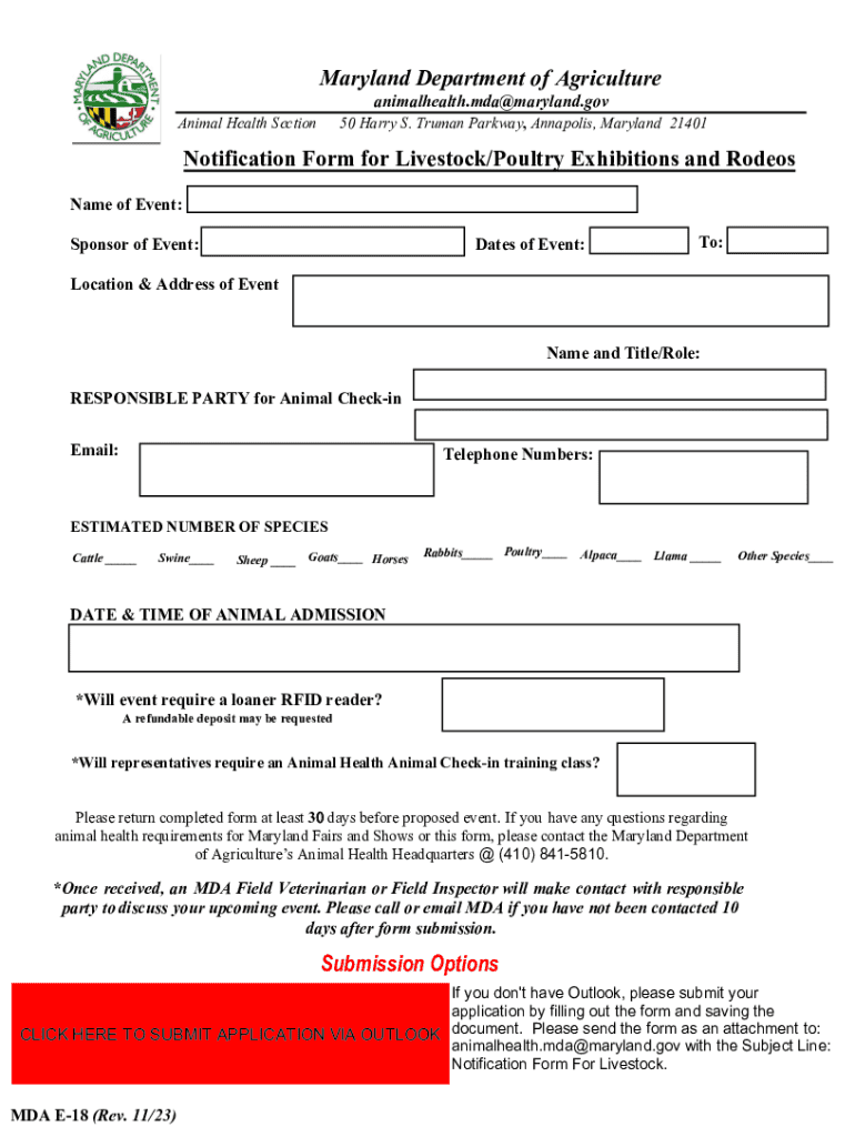 Get the free Notification Form for Livestock/poultry Exhibitions and Rodeos - mda maryland