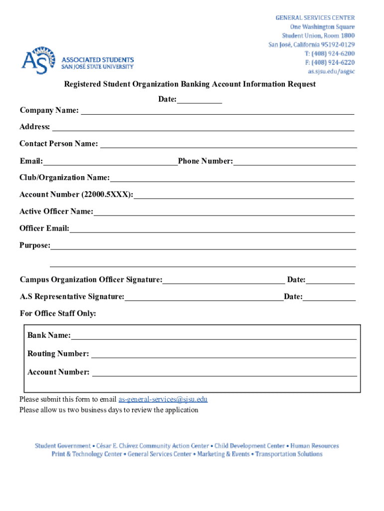 When planning to open a banking account for your registered student organization, several questions commonly arise. A frequently asked question is what documentation is necessary for the account opening process. You'll typically need the Registered Student Organization Banking Form, IRS documentation if applicable, and identification for authorized signatories.