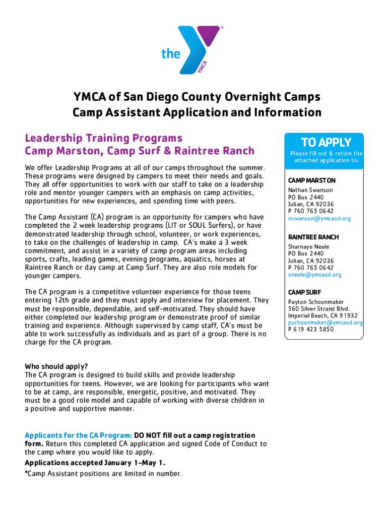 Get the free Ymca of San Diego County Overnight Camps Camp Assistant Application