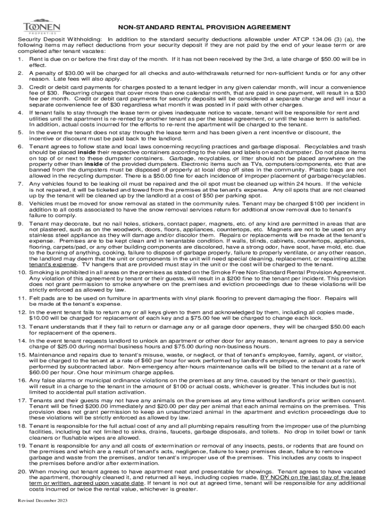 Landlords and tenants often have queries regarding non-standard provisions. A common concern is what happens if terms of the agreement are violated. Understanding the consequences and proper channels for addressing such issues is imperative for both parties.