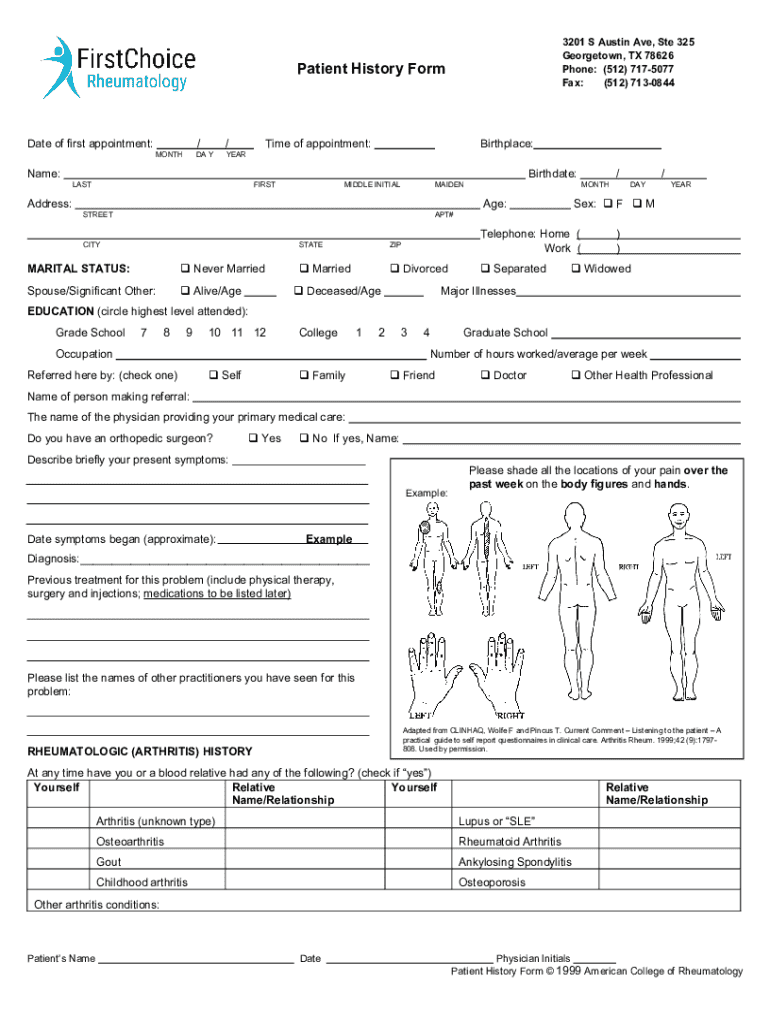 Get the free Patient History Form