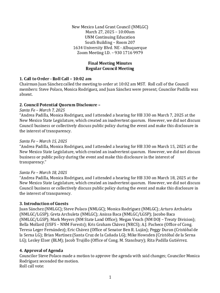 Get the free New Mexico Land Grant Council Meeting Minutes