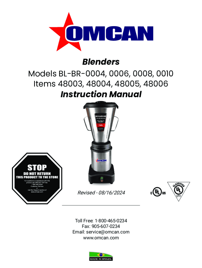 Cette instruction manuelle fournit des informations sur l\'utilisation et l\'entretien des mélangeurs Omcan, y compris des instructions de sécurité, des spécifications techniques, et une section