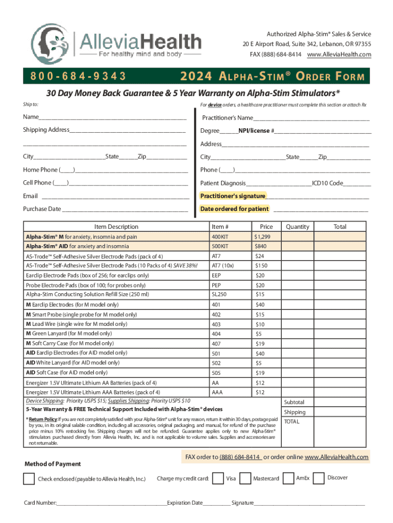 2024 Alpha-Stim Order Form: Your Comprehensive Guide