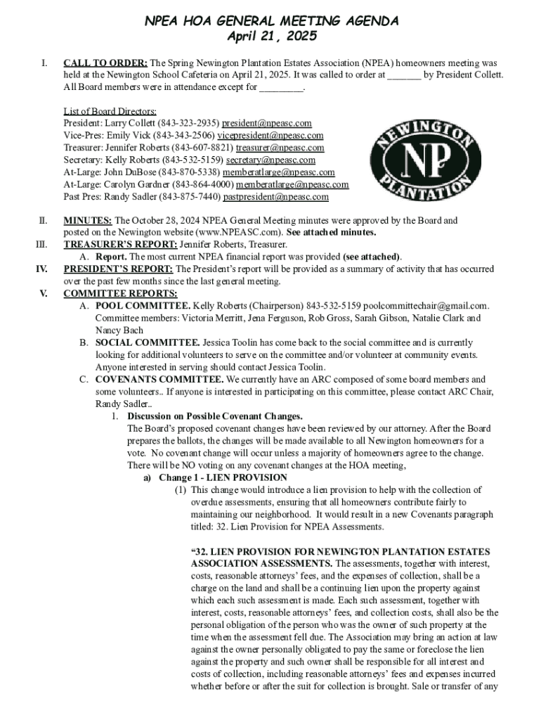 Your Comprehensive Guide to the NPEA HOA General Meeting Form