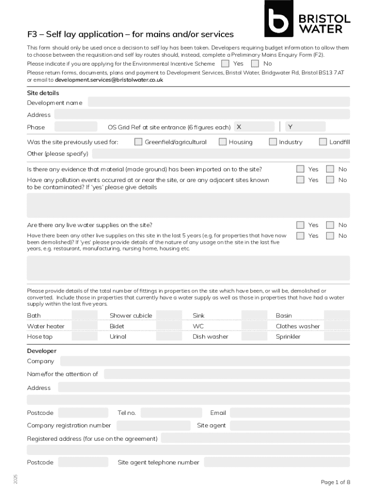 Get the free F3 – Self Lay Application – for Mains and/or Services