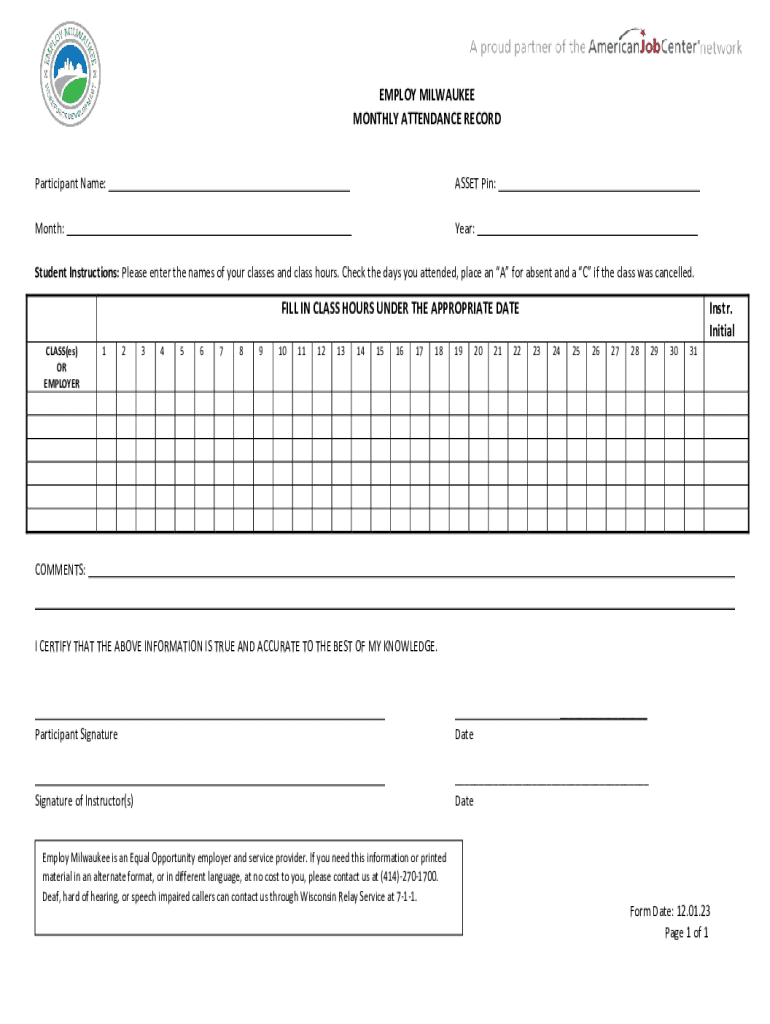 Employ Milwaukee Monthly Attendance Form: A Comprehensive Guide