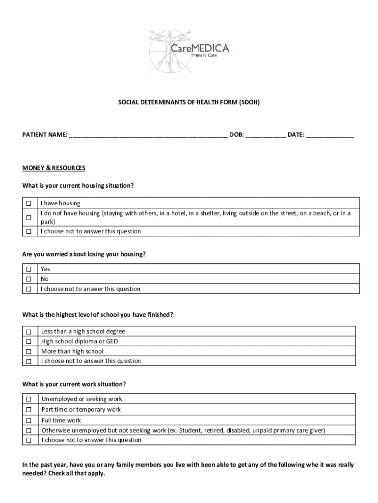Incorporating SDOH data into individualized care plans allows healthcare professionals to tailor interventions that address not only the medical needs but also the social barriers that patients face. For instance, if a patient indicates food insecurity on their SDOH form, a healthcare provider could offer referrals to community food banks or nutrition programs, ultimately leading to better health outcomes.