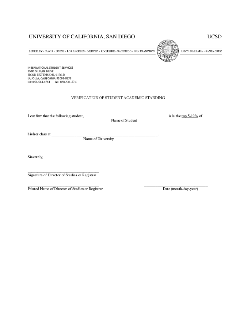Get the free Verification of Student Academic Standing