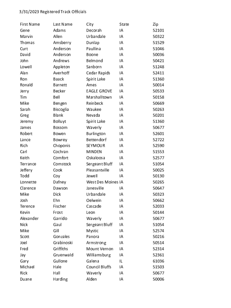 Get the free Registered Track Officials