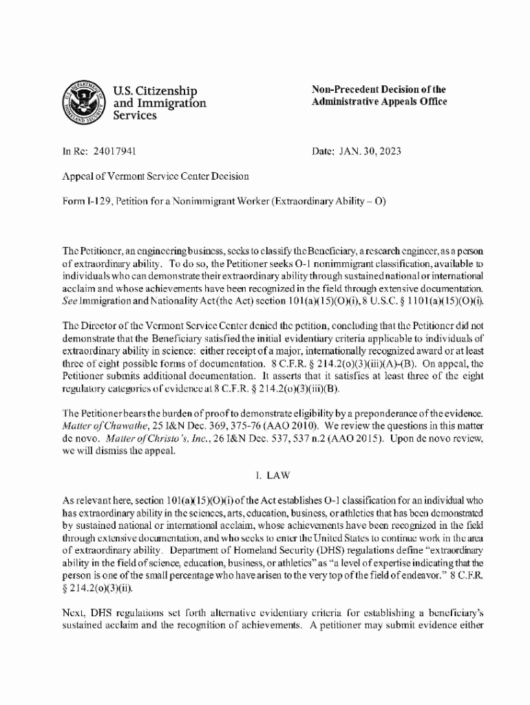 Get the free Non-precedent Decision of the Administrative Appeals Office