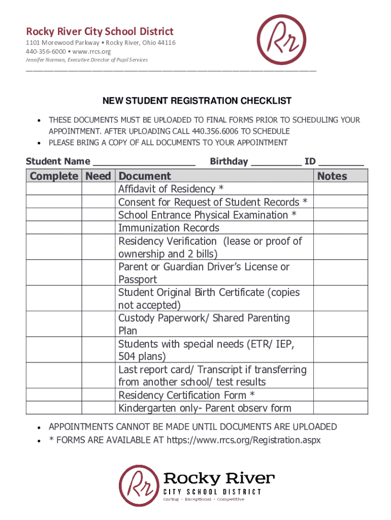 The checklist not only outlines the required information but also serves as a guide for new students and their families, allowing them to verify completion of each step. This organized approach significantly streamlines the process, reducing the chances of errors and omissions.