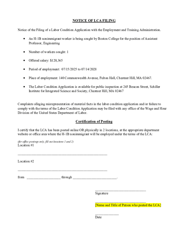 Get the free Notice of Lca Filing