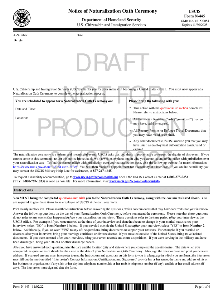 Get the free Notice of Naturalization Oath Ceremony