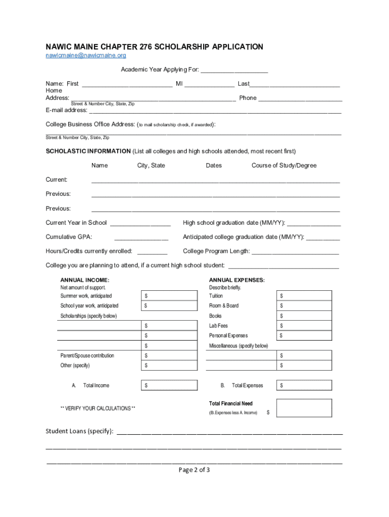 Get the free Nawic Maine Chapter 276 Scholarship Application