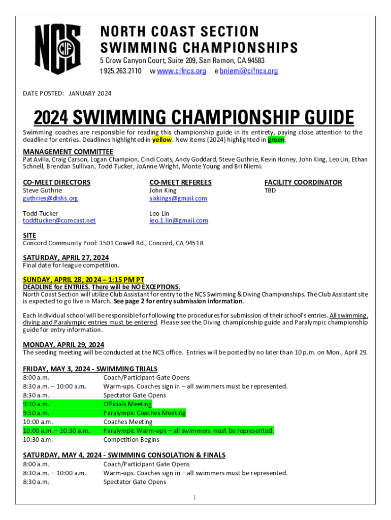 Preparation for upcoming competitions hinges on timely, accurate documentation. Ensure your North Coast Section Swimming Form is completed and submitted correctly to avoid complications.