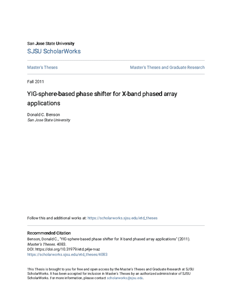 Get the free Yig-sphere-based Phase Shifter for X-band Phased Array Applications - scholarworks sjsu