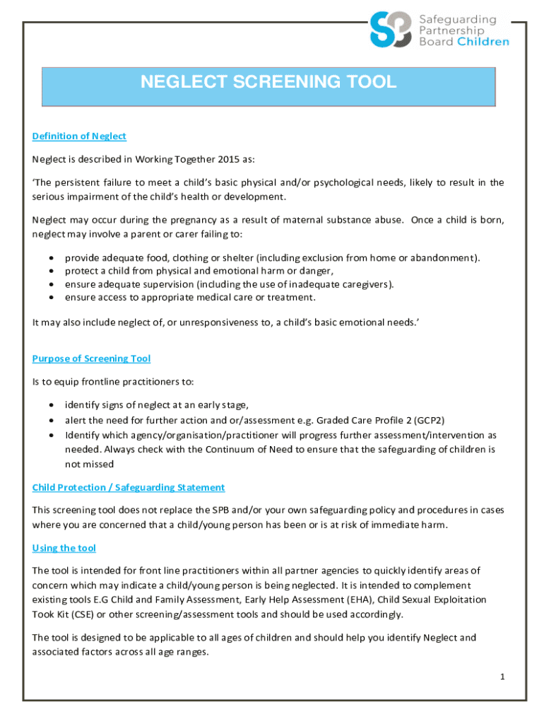 Comprehensive Guide to the Neglect Screening Tool Form