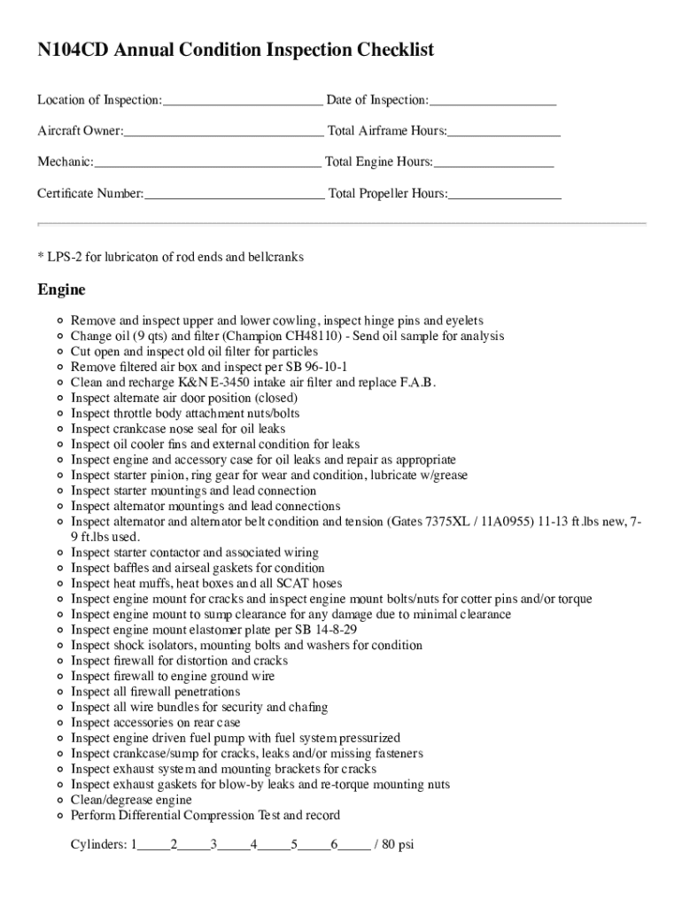 Comprehensive Guide to the N104CD Annual Condition Inspection Form