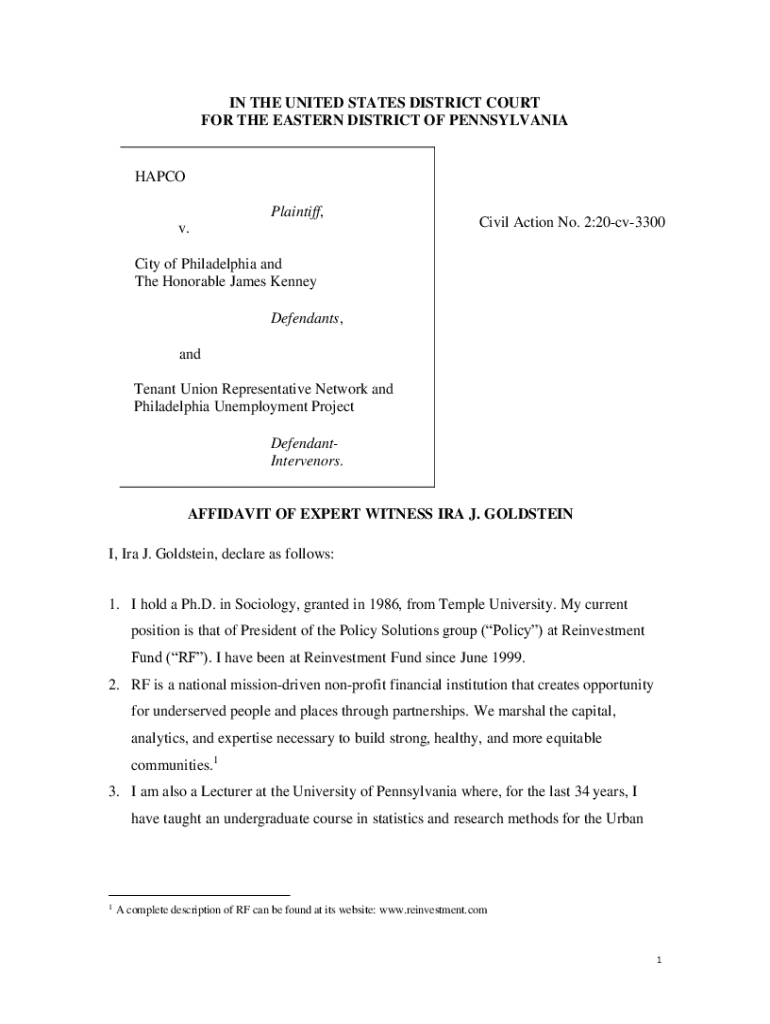 Get the free Affidavit of Expert Witness Ira J. Goldstein