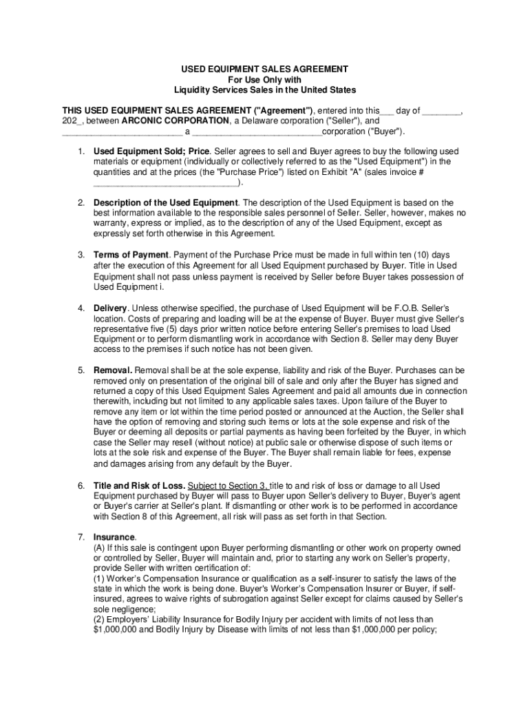 In this context, having a comprehensive used equipment sales agreement is essential for ensuring fair transactions where both parties understand their rights and obligations.