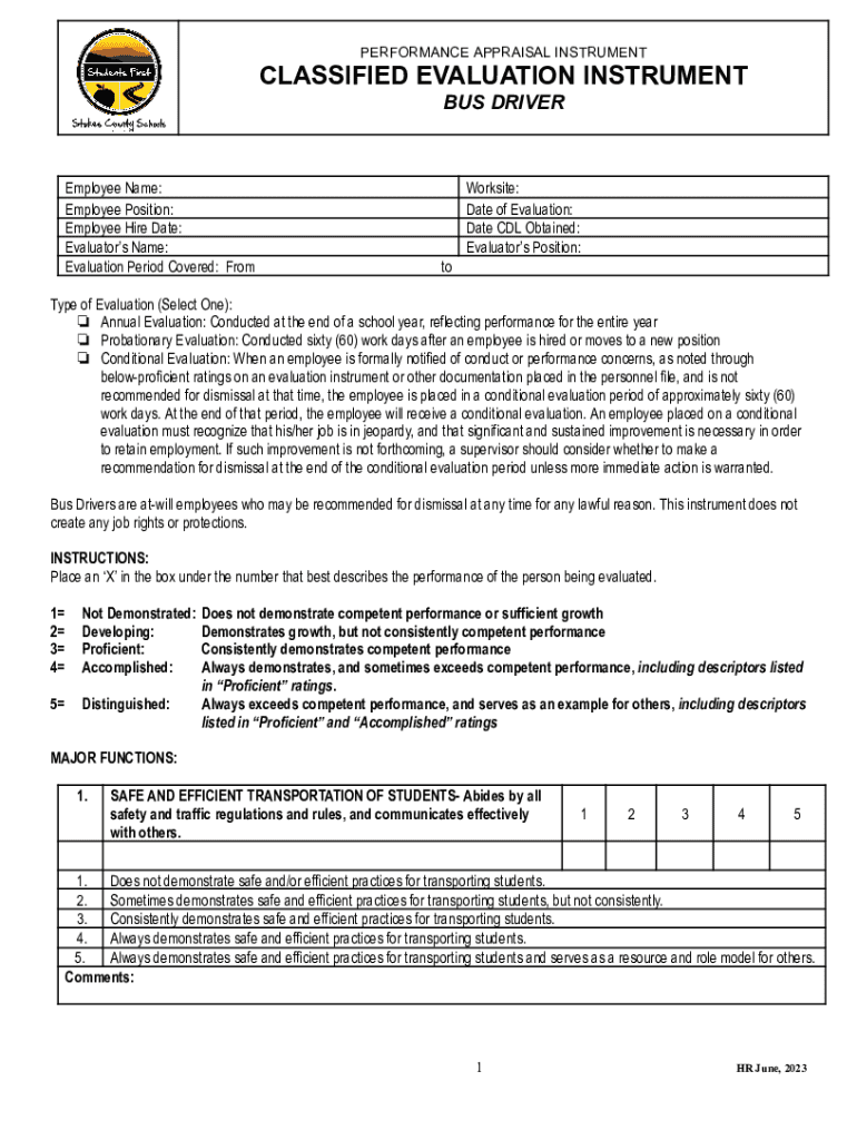 The importance of performance appraisals in the transit industry cannot be overstated. They play a critical role in enhancing driver accountability, ensuring compliance with safety regulations, and fostering a culture of continuous improvement. Key components of an effective appraisal form typically include performance metrics, qualitative evaluations, and opportunities for professional development.
