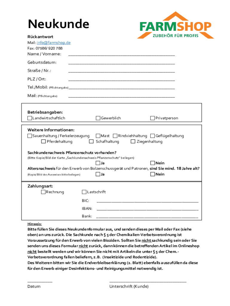 Welche Informationen müssen auf neukundenformular gemeldet werden?