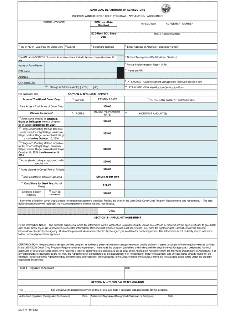 Get the free 2024/2025 Winter Cover Crop Program - Application / Agreement - mda maryland