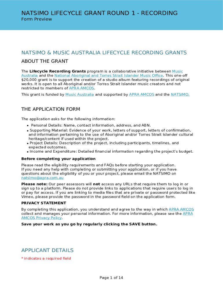 A comprehensive guide to the Natsimo lifecycle grant round form