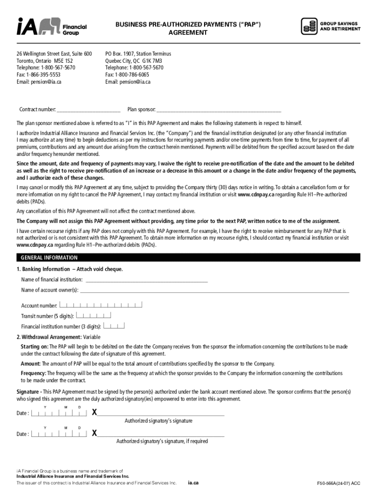 Get the free Business Pre-authorized Payments (“pap”) Agreement