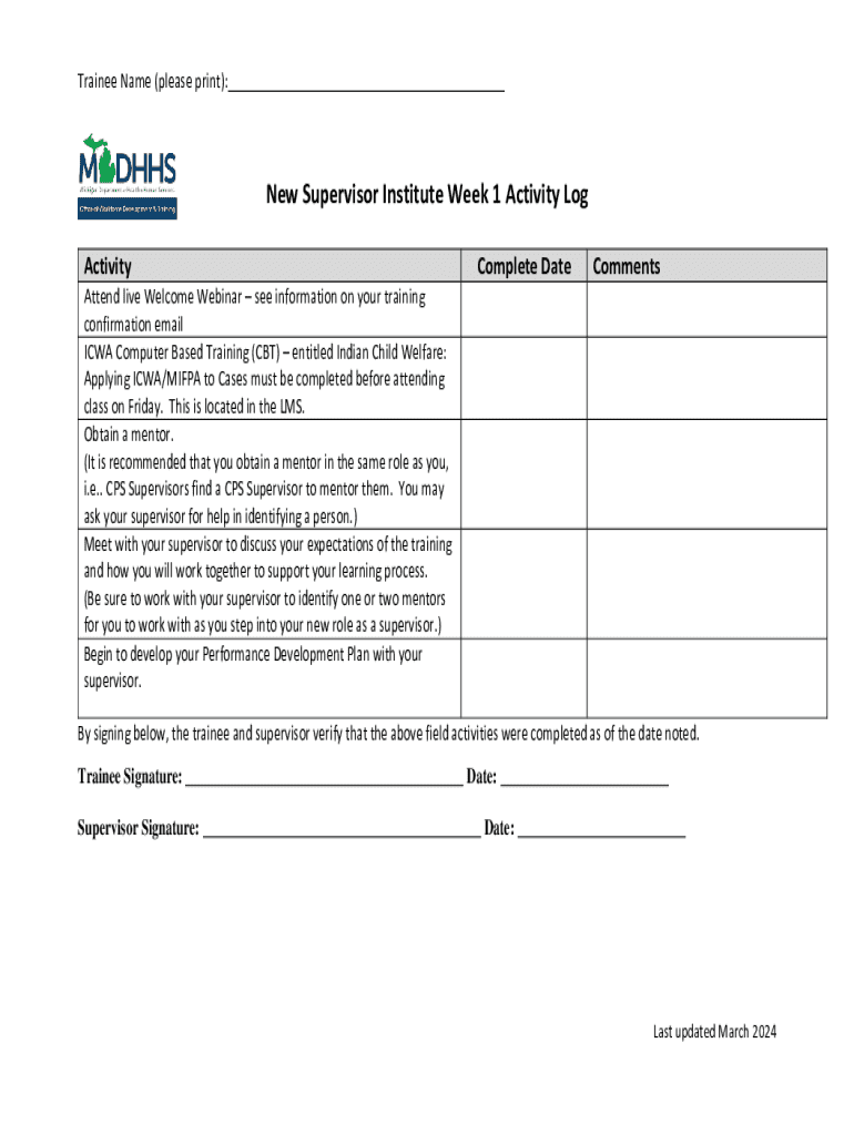 The New Supervisor Institute Week Form is an essential document designed for new supervisors embarking on their training journey. It serves to streamline the administrative process associated with supervisory training, ensuring that all pertinent information is collected efficiently and systematically. The significance of this form lies not only in its role in documentation but also in its contribution to a structured and supportive training environment for new managers.