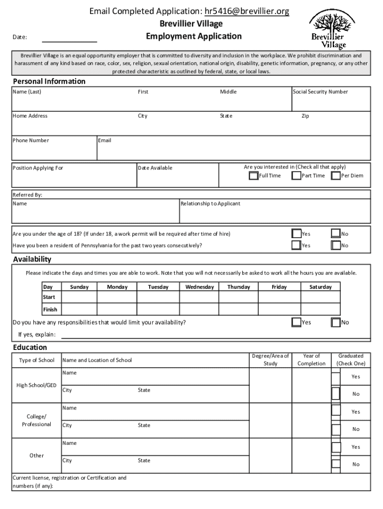 Comprehensive Guide to Brevillier Village Employment Application Form