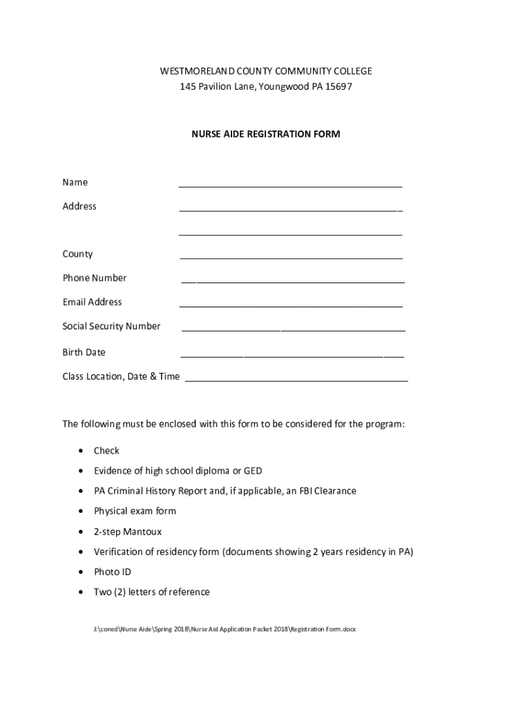 Get the free Nurse Aide Registration Form