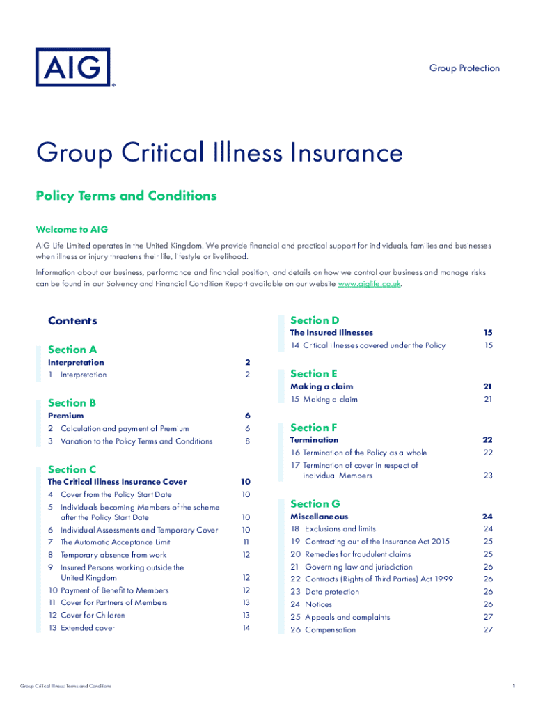 Get the free Group Critical Illness Insurance Policy Terms and Conditions