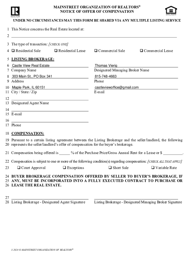 Get the free Notice of Offer of Compensation