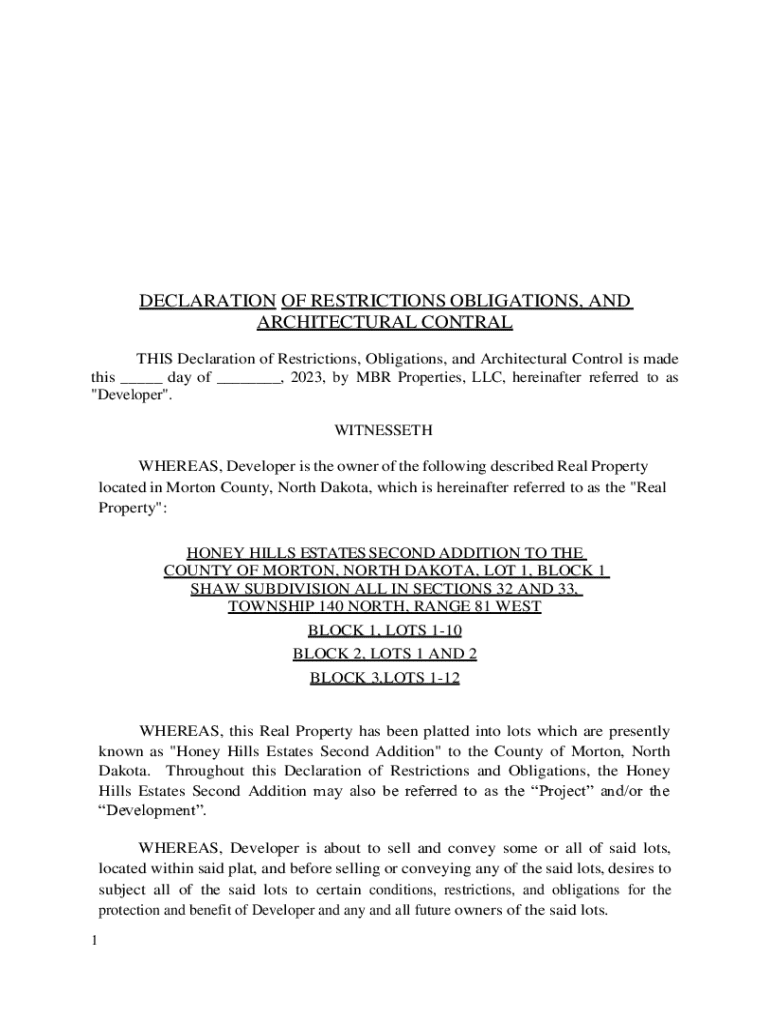 Get the free Declaration of Restrictions, Obligations, and Architectural Control