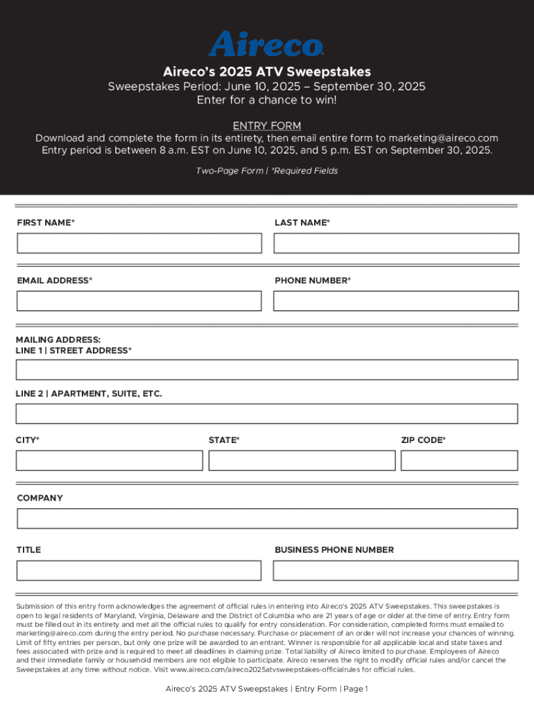 Get the free Aireco’s 2025 Atv Sweepstakes