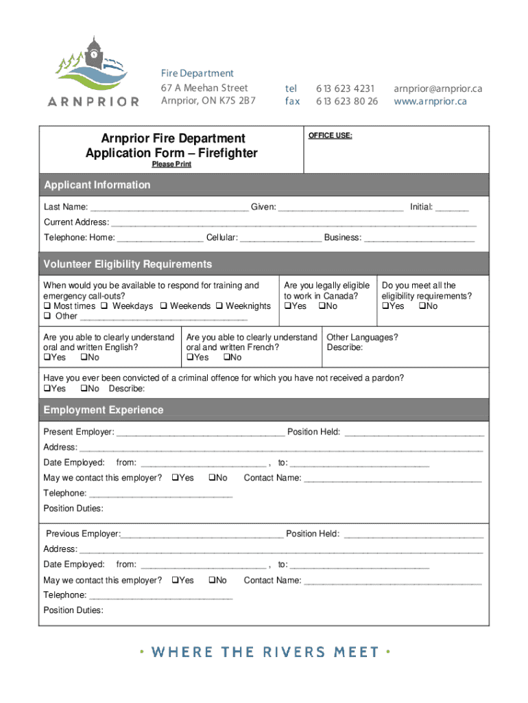 Get the free Application Form – Firefighter