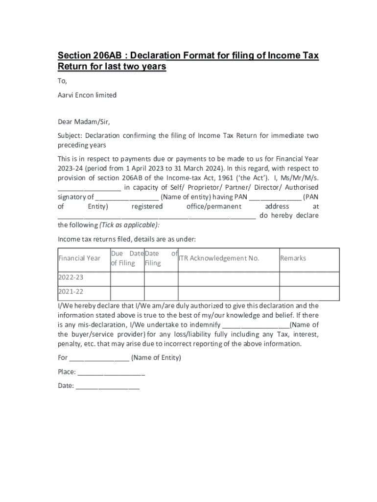 Comprehensive Guide to the Income Tax Return Declaration Form