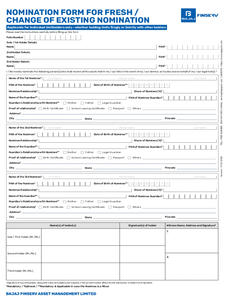 Get the free Nomination Form for Fresh / Change of Existing Nomination