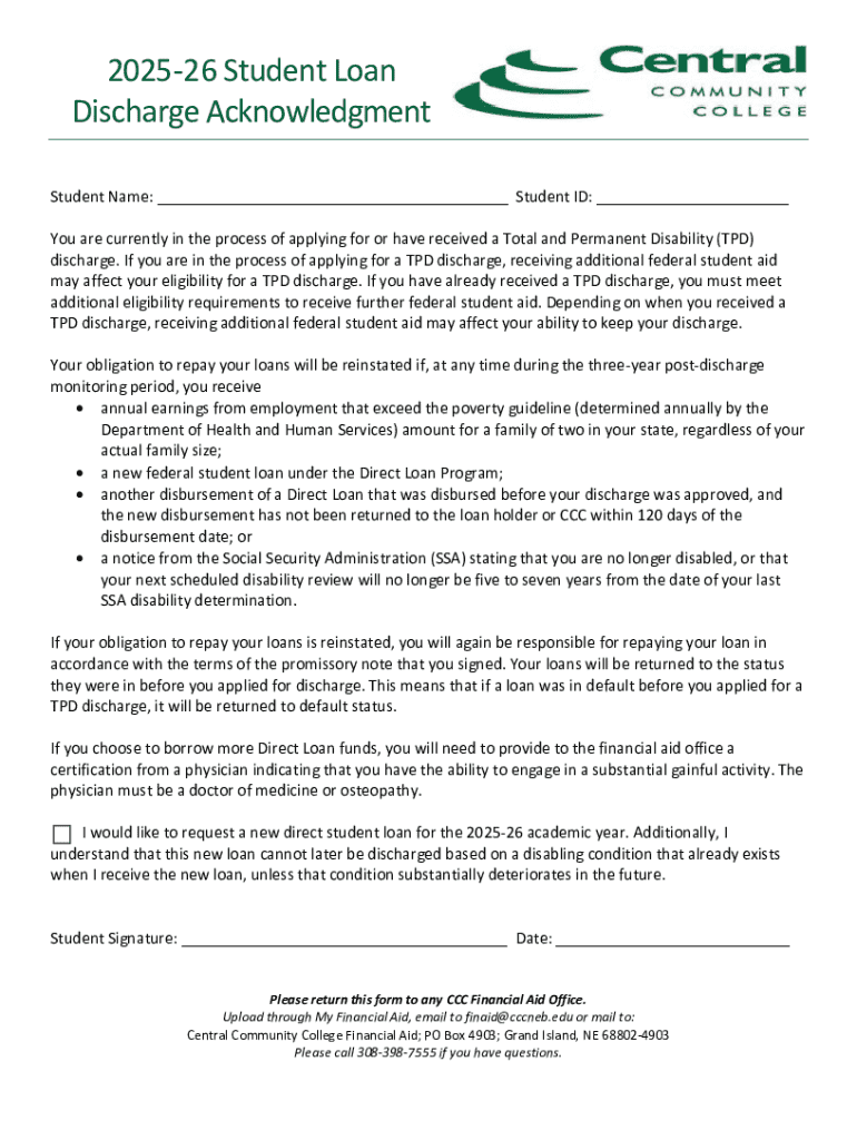 The 2025-26 student loan discharge refers to a program or policy that allows certain borrowers to have their federal student loans canceled or forgiven under specific circumstances for the academic year 2025-2026.