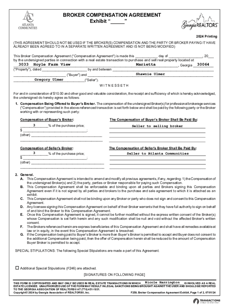 Get the free Broker Compensation Agreement