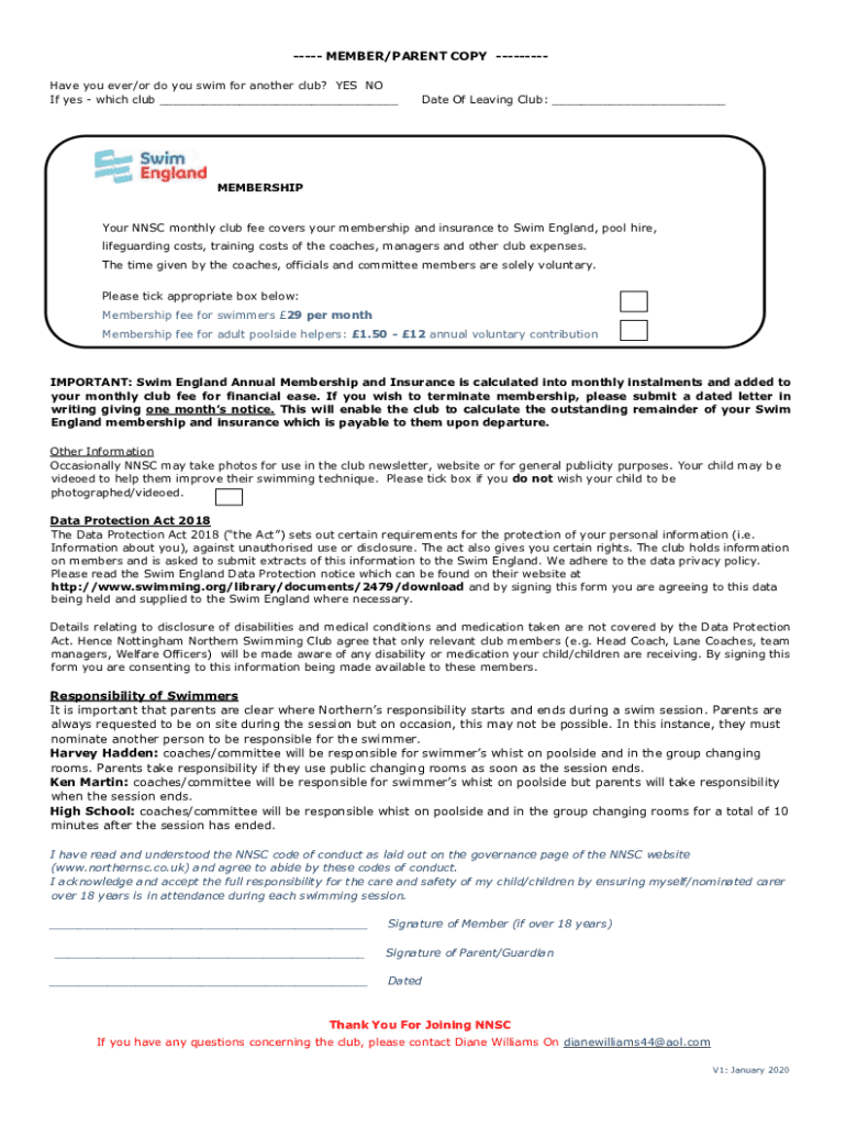 Get the free Northern Wave Swimming Club Membership Form