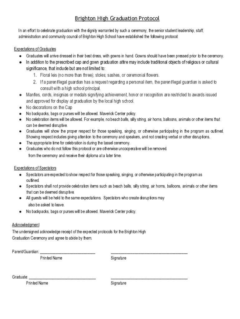 Many students may have questions regarding preparation for graduation, and the Brighton High Graduation Protocol Form plays a significant role in this process. Common inquiries revolve around requirements, deadlines, and submission processes.
